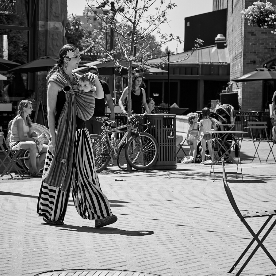 Story builders all. Just love the striped lady and her baby. The chairs, the trash bin, the bikes – every corner of this image oozes of checks and stripes. Well chosen.