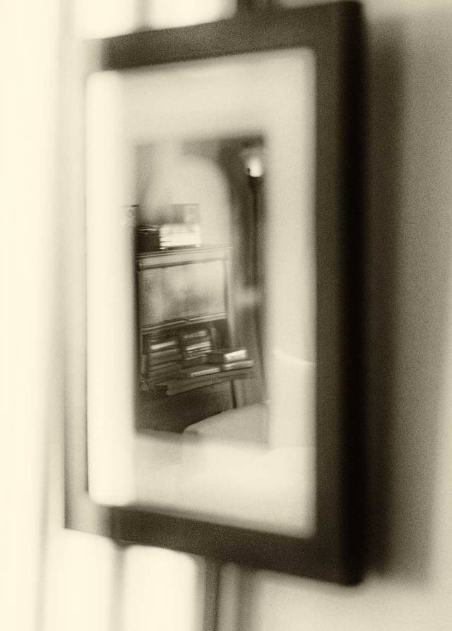 The morning’s sun light created a reflection of a room while the actual image within the photograph is transformed into a ghosty presence.