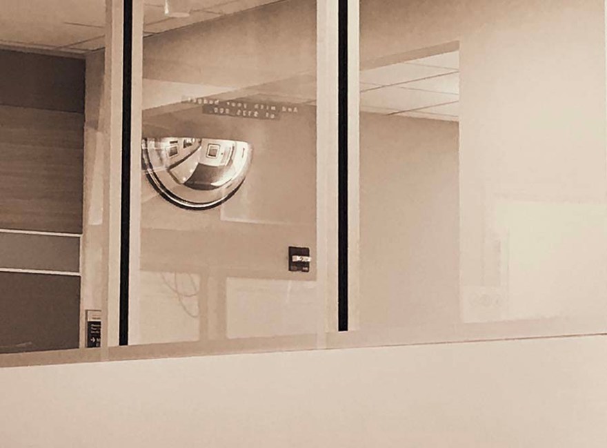 My eyes first were attracted to the repeating patterns of the building and then to the repeating patterns of the yellow strips within the curve of the trail. Then a gift…a runner whose figure completed the image. Her greeting and smile were icing on the cake.