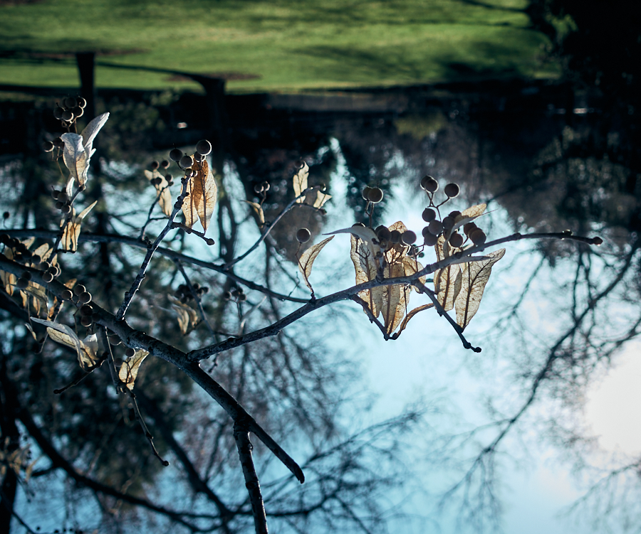 While the first image brings my attention to how the spring’s morning sun highlights the autumn leaves, I found that the 180 degree rotation opened my eyes to how irritating the sun was in the upper left as well as invited me to explore using the horizon (rule of thirds).