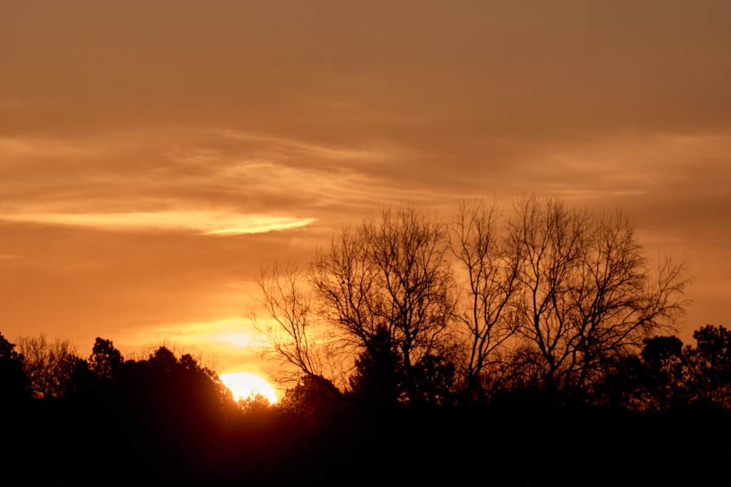 one tree lit by setting sun,